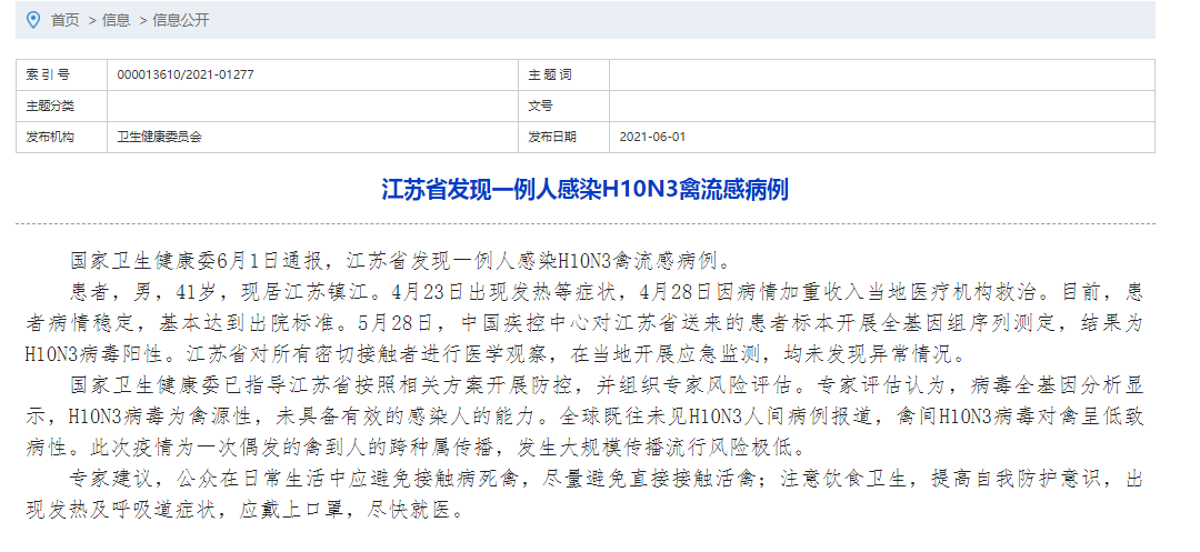 H10N3 / ä¸å½åºç°é¦ä¾ææ"h10n3ç¦½æµæç æ¯'ç 人 ç§'æç¯å¢ Dw 01 06 2021. The man was stable and ready to be. China reported the world's first human infection of the h10n3 bird flu strain on tuesday but said the risk of it spreading widely among people was low. The first case of human infection from the h10n3 strain of bird flu has been detected in china, reports said. In fact, before april, this strain of flu virus had never been known to jump to human. The nhc said there had been no human cases of h10n3 previously reported in the world.